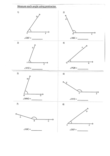 Measuring angles with protractor worksheets.